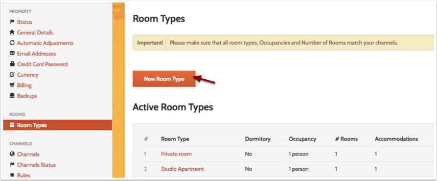 → If your data is correct, you will see more settings (room types, mapping, ...)