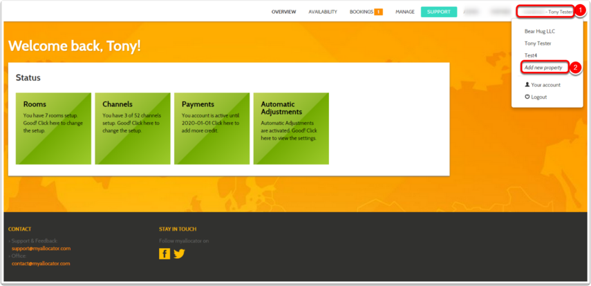 This article will show you how to add, manage, and remove additional properties from your myallocator account.  Using this feature, you can manage multiple properties from one single myallocator login.