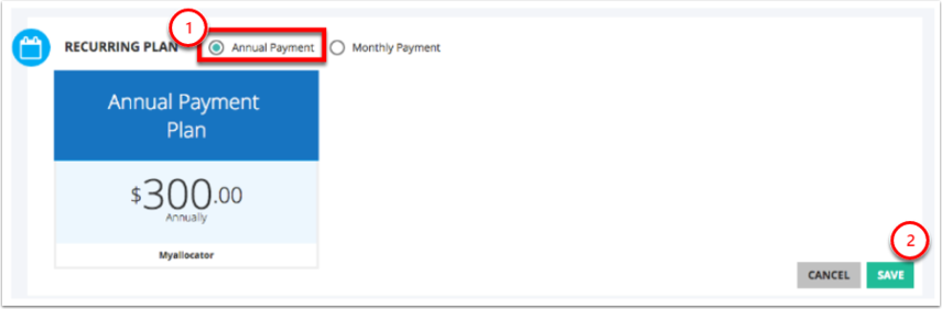 Click on "Annual Payment", then save at the bottom of the page.