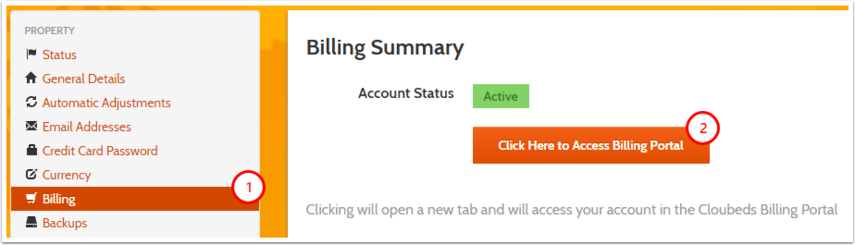 2. "Click here to Access Billing Portal" button.