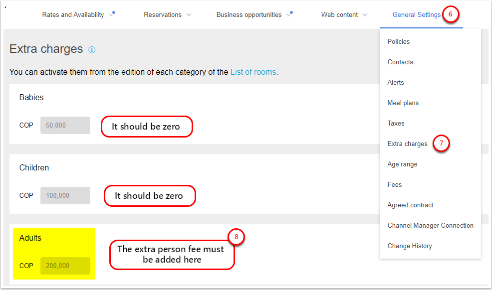 8. Make sure that the extra person fee is correct. If not, contact the Decolar.com Support team or your account manager to set up this price for you according to your needs.